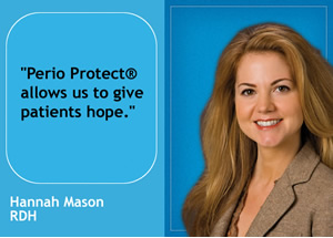 RDH Hannah Mason works in Scottsdale Arizona with Dr. Alison Schwartz. She has been using Perio Protect® since May 2007 and provides insights in this interview. |