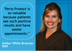 RDH Amber White Brannan works at a large family dental practice in Jacksonville, Illinois with Dr. Tom Loughary. Her office has been using the Perio Protect Method® since 2004. |