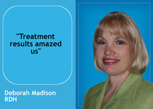 A - It is incredibly exciting to see the dramatic results we have had the past four years with this system. It is very encouraging to find this treatment option after 39 years of dental hygiene practice. Just wish I had been able to offer it YEARS ago!